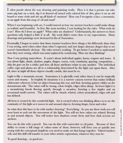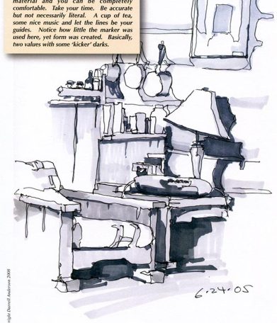 Darrel Anderson lives, paints, and conducts workshops on Bainbridge Island WA.  Please visit his website and his blog for more of his work, essays on art, lessons, and his book. He is also a fine oil painter as well. Stay tuned for that!