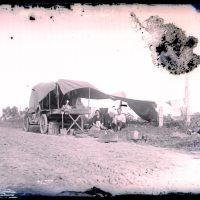 Archer created a thick flammable liquid, called collodion, by dissolving explosive cellulose nitrate (gun cotton) in ether, alcohol, and potassium iodide, which was flowed onto a sheet of glass the size of the finished print. After plunging the plate into a bath of silver nitrate (turning the collodion into a light-sensitive silver iodide), Archer then put the coated glass plate in a plate holder in the camera, exposed it, and then developed the plate in the darkroom (or if on location, the developing tent). This process had to be completed before the collodion dried, which would have been about five-to-six minutes on a warm day.